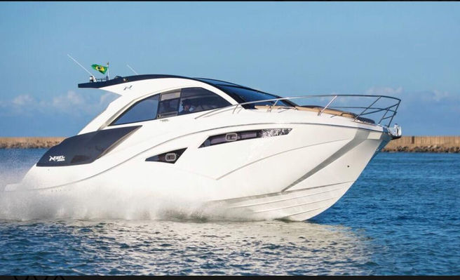 Lancha Light NX 40 pés. 2 Cabines sendo uma Suíte. Ar condicionado, Água quente, Geladeira, Fogão, Churrasqueira, 2 TVs, Geleira, Som. Embarque: Píer privativo. Pernoite: Sim. Capacidade: 16 pessoas.
