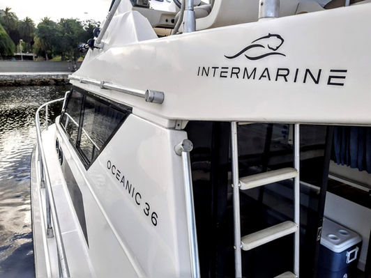 Lancha Oceanic Xfactor 36 pés. Banheiro, 2 cabines. Embarque: Marina da Glória. Pernoite: Não. Capacidade: 11 pessoas.